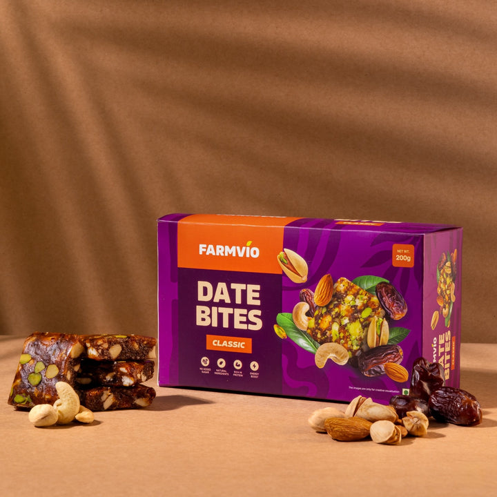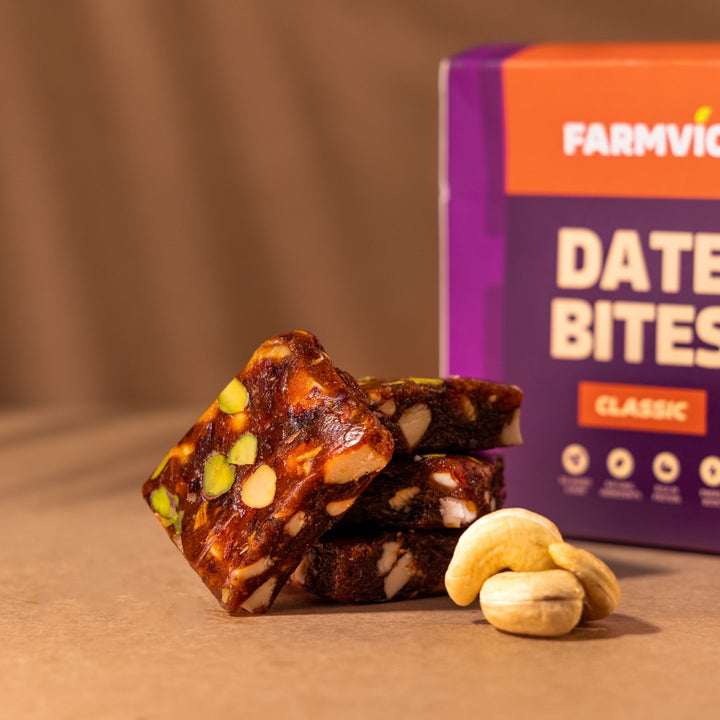 Relish the simple goodness of Farmvio Classic Date Bites – a naturally sweet snack that keeps you energized, anytime, anywhere.